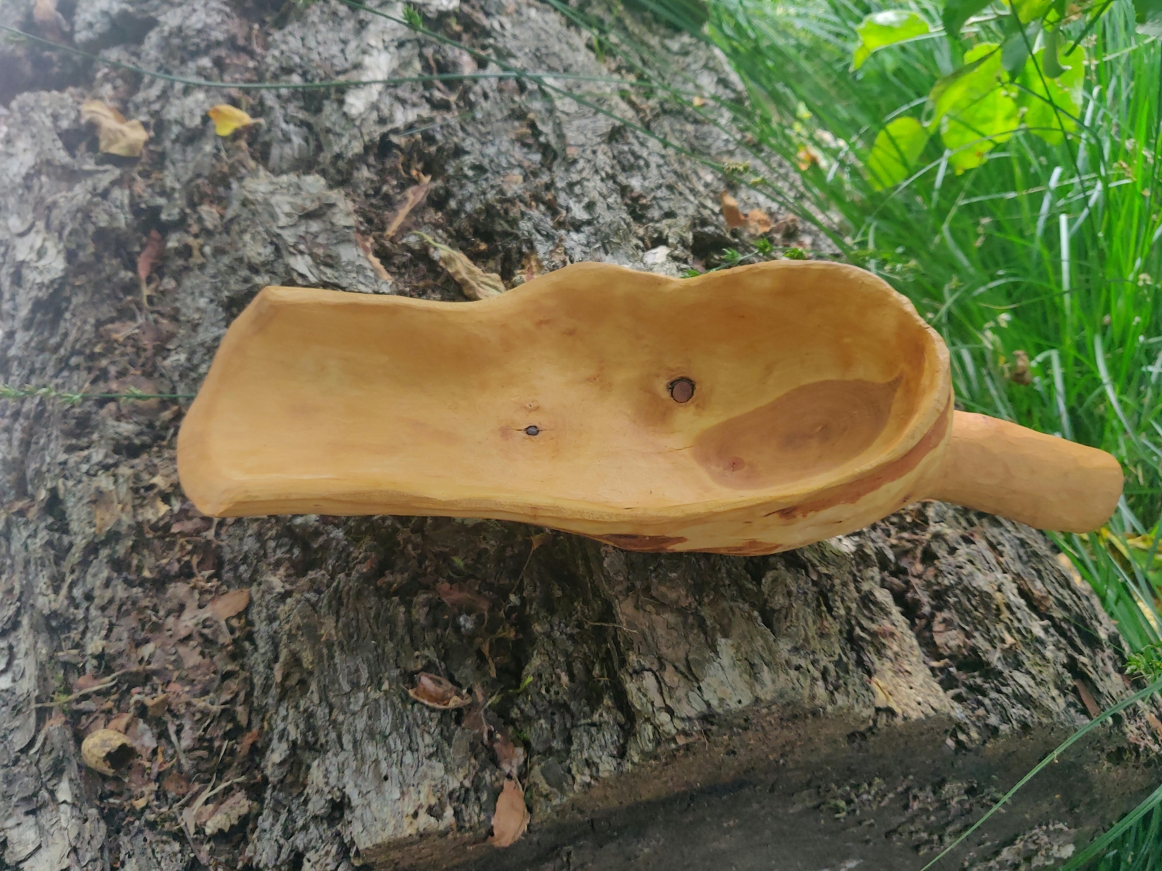 a large scoop carved in storm fallen apple from an abandoned orchard in montana