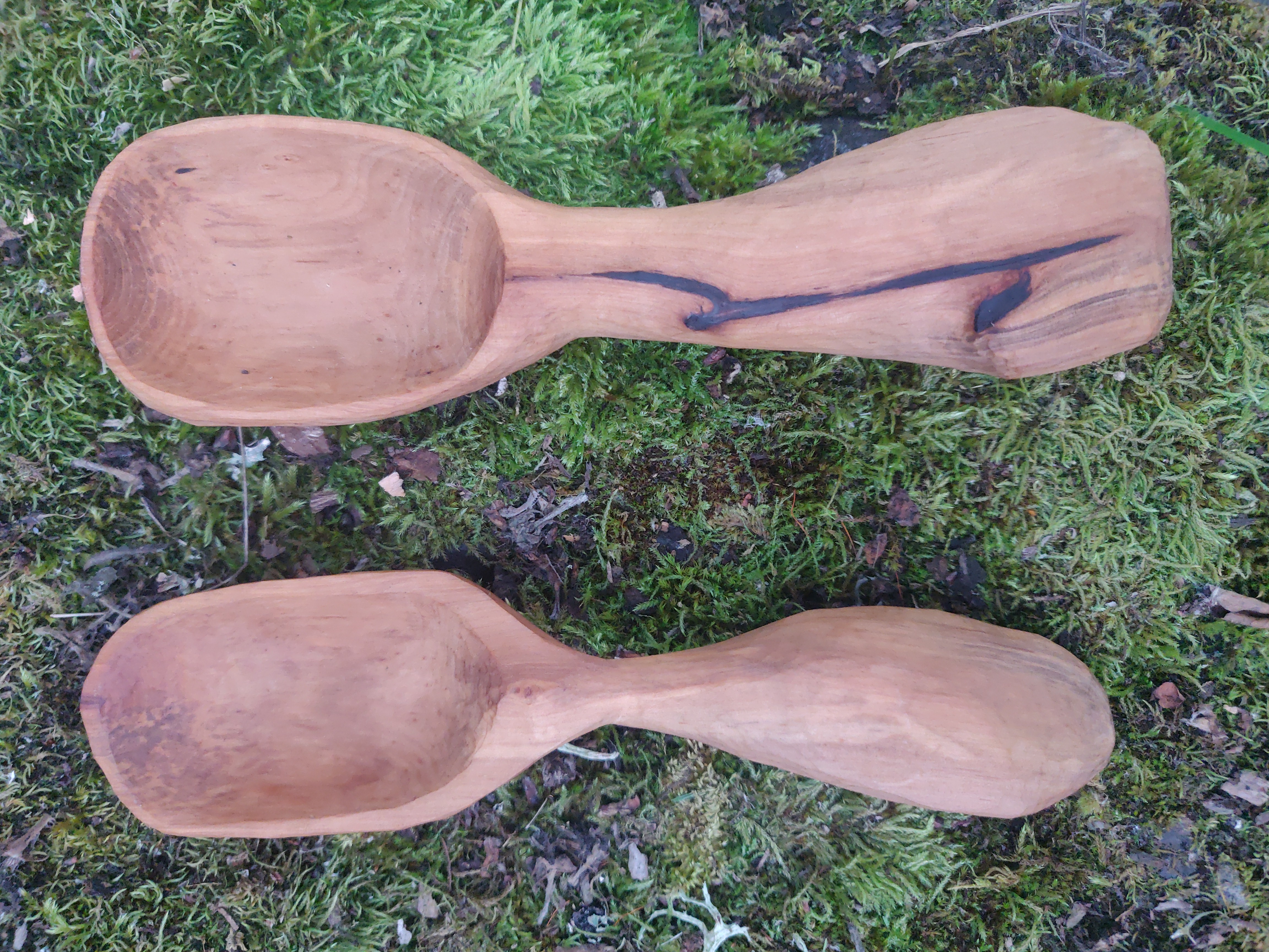 two scoops from a spalted hawthorne log found beside a trail in montana
